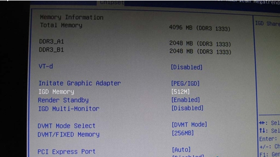 1、开机的时候按DEL进入BIOS,集显调节位置在 Chipset - North Bridge子项里面。