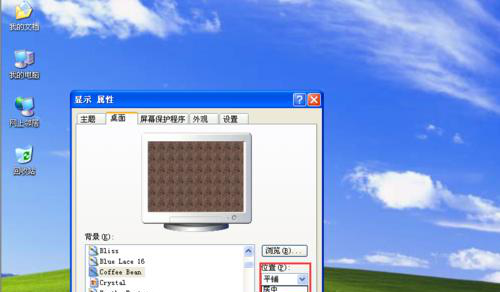 4、接下来在“位置(P)”下拉框中,选择图片的位置;即可看到图片在桌面中显示的位置情况;