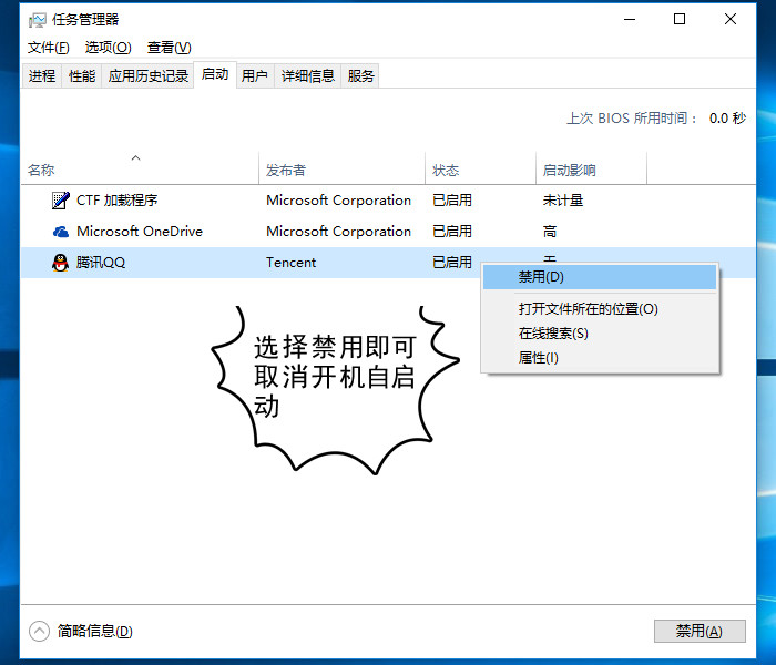 2、打开Windows 10任务管理器之后,就可以看到,这里除了有熟知的“性能”、“进程”、“用户”等熟悉项目外,还新增了“启动”选项,切换到启动选项,然后点击选中需要禁用的启动项,点击底部的“禁用”就可以了:(IT外包公司)