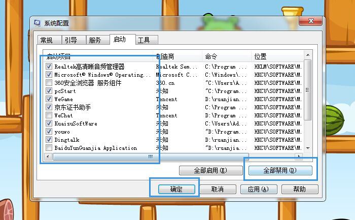 建议将安装的一些软件,如各类播放器、驱动精灵等都可以禁止启动,仅保留系统必须启动的项目即可。(电脑维修)