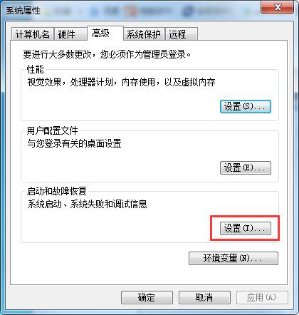 4、在高级里面-启动和故障恢复-选择设置;(
