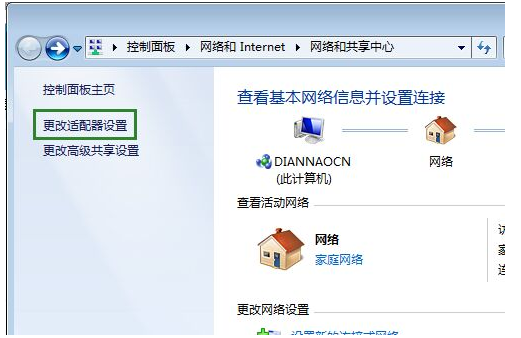 2、网络共享中心界面点击【更改适配器设置】,如下图所示:(机房监控工程)