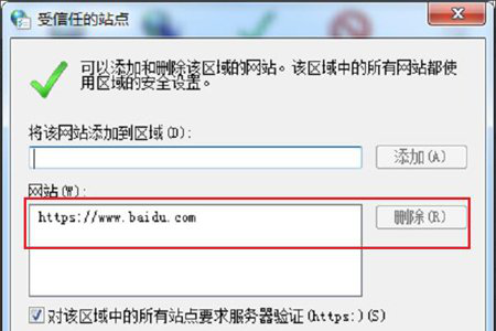 6、将用到的站点添加到受信任站点里面,添加好后,点击关闭,如下图所示: