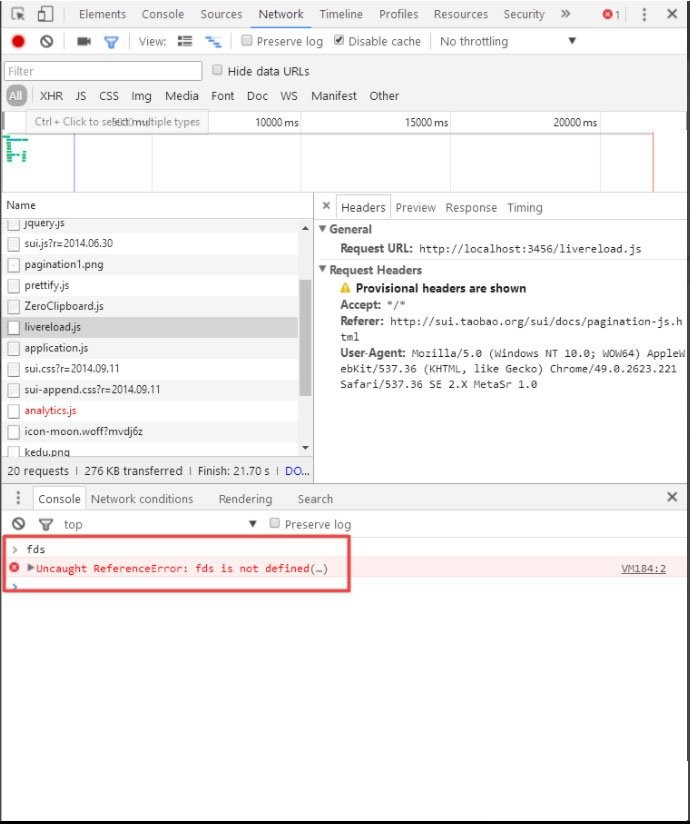 如果程序员写js代码时,有语法错误,可能也会导致页面报错,例如随便往控制台输入一个无法识别的代码,就会报错。