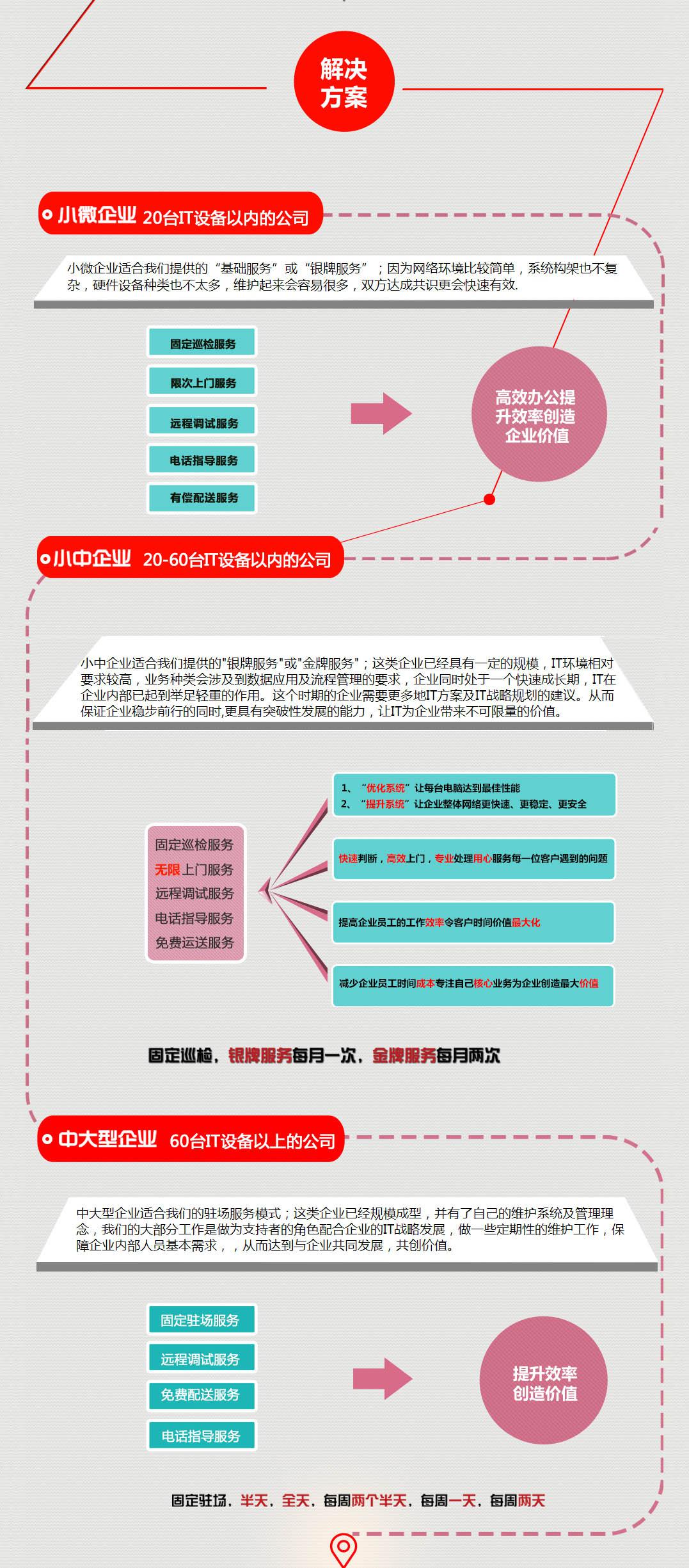 总结:透过以上的三类方案,完全适合0-200人之间的中小企业来选择,艾锑服务总有一款适合你。退一万步来说,如果你在这些方案中还找不到一款适合你企业的IT外包服务方案,那还有一种终极服务方式我们相信一定可以让你满意,就是“私企定制”服务,“私企定制”是我们专门为个性化的企业提供定制个性化的服务,一定会让您企业百分百满意。