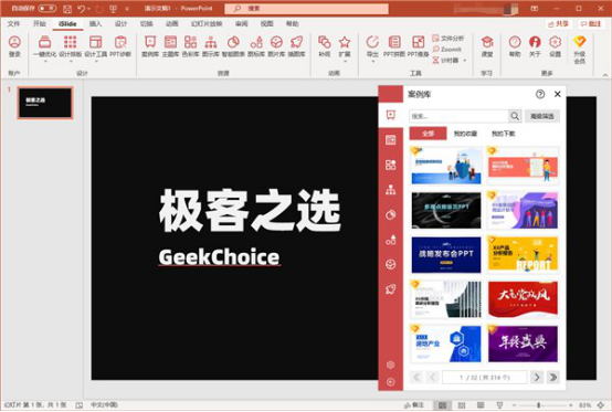 之前我们给大家介绍过的 iSlide 插件不仅提供了能一键对齐的设计工具面板,还能一键统一字体、一键排版。在 iSlide 的素材库中,也有丰富的模板、图标可以一键调用。