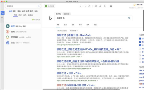 Mr.Otter 能帮你节省大量的搜索时间。你只需要在 Mr.Otter 中输入一次关键词,点击不同标签即可一键切换到不同的搜索引擎。