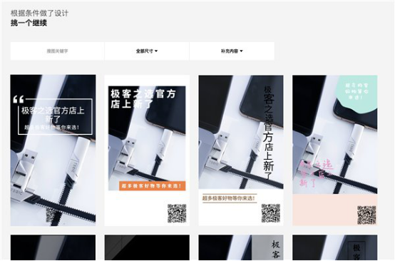 在 ARKIE 中输入少量关键字,即可自动生成若干种不同样式的海报图片,按照需求简单修改即可下载图片了。