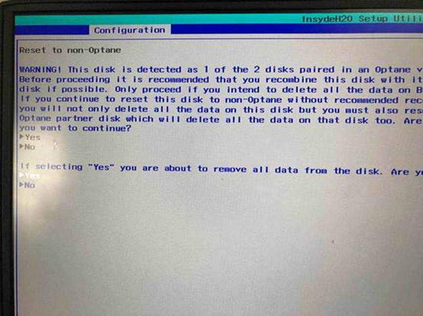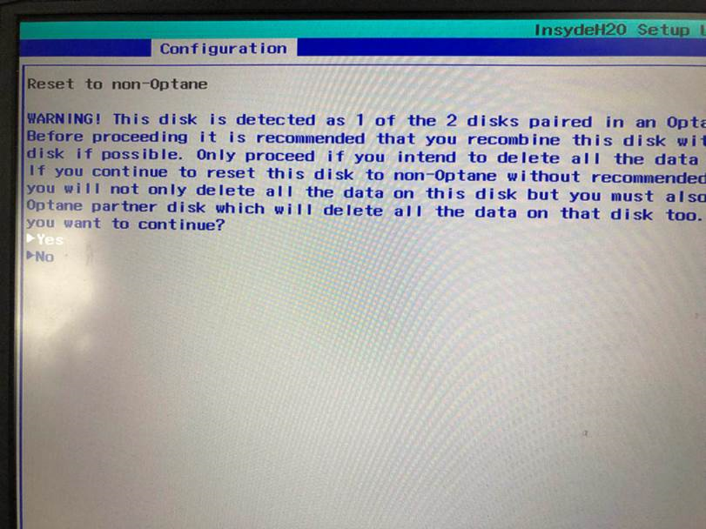 重要提示:进入BIOS将机器傲腾重置,重置会导致电脑硬盘包括傲腾盘中所有数据丢失,请提前备份好电脑中的数据(包括Office账户信息)至U盘或移动硬盘,重置后更改硬盘模式AHCI,正常就能看到硬盘。