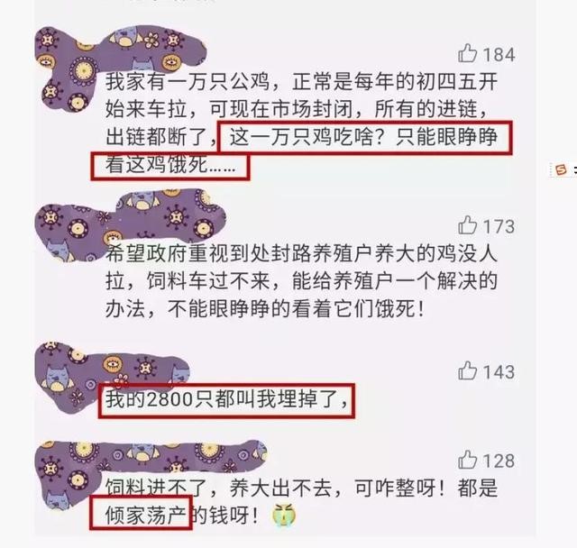 “一万多只鸡被活埋了。”一位江西网友记录了自己的回乡见闻,隔壁的养鸡大户,由于多日道路受限,运输不通,鸡饲料供应不足,他所饲养的1万多只鸡因缺粮无奈计划活埋。