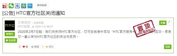 2月6日消息,HTC官方发布公告,从2020年2月7日起,HTC官方社区将正式关闭。
