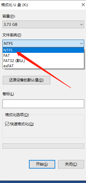 因此,如果我们想要把一个单个体积超过4G的容量存到U盘里,就需要把你的的U盘格式化成NTFS格式。