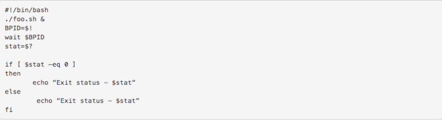 Wait 命令的退出状态值取决于最后指定的PID / JID。当任何进程异常终止时,退出状态将大于128。