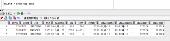 INSERT INTO emp_copy SELECT emp_sequence.nextVal,C.* FROM ( SELECT e.ename , e.JOB , e.mgr , e.hiredate, e.sal , e.comm , e.deptno, SYSDATE AS CREATEDTIME, SYSDATE AS UPDATEDTIME, 123124 AS CREATEDBY, 123124 as UPDATEDBY FROM emp e, dept d WHERE e.deptno = d.deptno AND d.loc='CHICAGO' and e.sal>=1500 )C; |