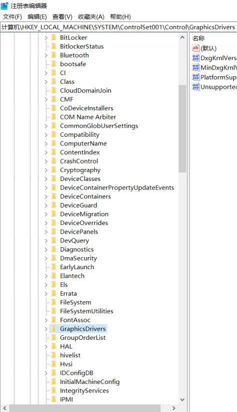 然后再次右击ControlSet001选项点开,通快下拉菜单你会看到GraphicsDrivers选项
