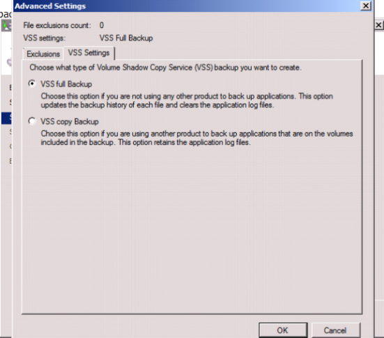 9、在高级中,切换到VSS Settings页面,选择VSS Full Backup