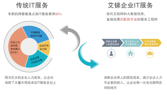 我们透过下图可以看出企业自招网管和用IT外包公司成本可以节省90%以上,而且还是专业的团队提供服务.