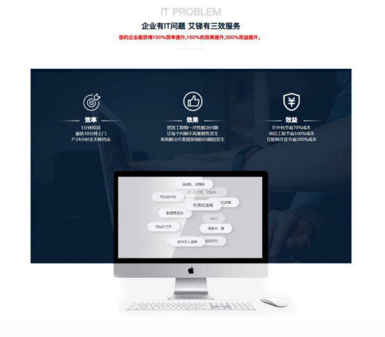 关于效率艾锑无限提出中小企业的服务请求,他们可以1分钟快速反应,保证最快30分钟上门,而且还能做到7*24小时全天候待命,这比自己养人划算多了.