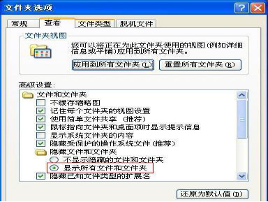 1.如上图所示,依次展开:“我的电脑”→“工具”(Vista用户在“计算机”里用Alt+T组合键唤出“工具”)→“文件夹选项”→“查看”→选择“显示所有文件和文件夹”并去掉“隐藏受保护的操作系统文件”前面的钩选→“确认”。