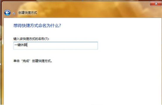 第三步:点击下一步,填写快捷方式名称,这里小编填写“一键休眠”方便辨认。