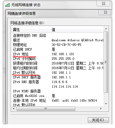 可以看到“ipv4”和“ipv4默认网关”。一般“ipv4默认网关”就是我们的路由器设置页面的IP地址。