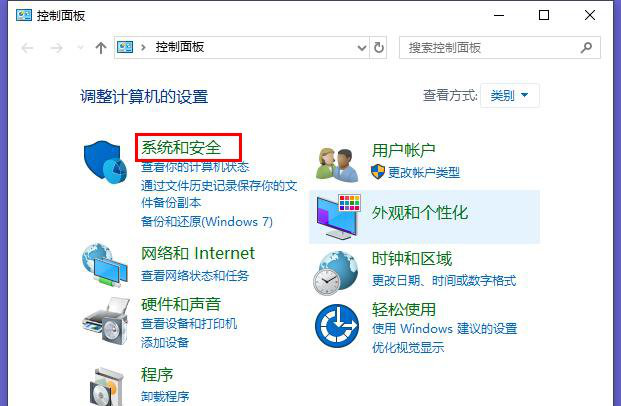 我们需要将账户权限调整至最低,首先我们需要开控制面板,点击“系统和安全”,如下图所示。