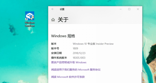 三、待卸载完成后按指示重启,Windows沙盒又可以正常开启了。同时,系统版本将回滚至18305.1000。