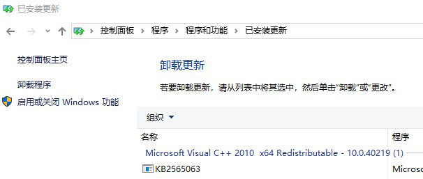 一、打开控制面板,前往“程序>程序和功能>已安装更新”。