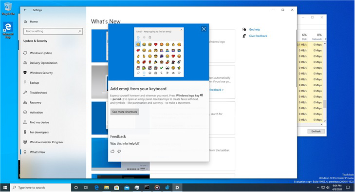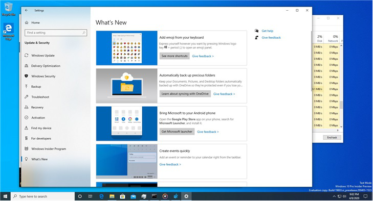 微软 Win10 快速预览版 19603 更新推送:设置中添加“新增功能”页面