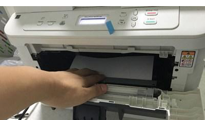 关闭电源后,需要拿出打印机中的耗材,然后就能看到卡住的纸张,一取出卡纸时,需要沿着出纸的方向将卡纸拿出来,此外要注意不要用力过猛,避免纸张撕裂导致残留在打印机内部。如果你确实遇到了一些碎纸留在打印机中的问题,那么可以把耗材安装好,然后让打印机空转自检,从而把碎纸吐出来。