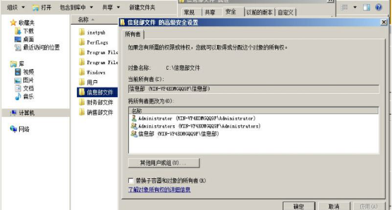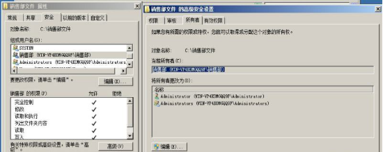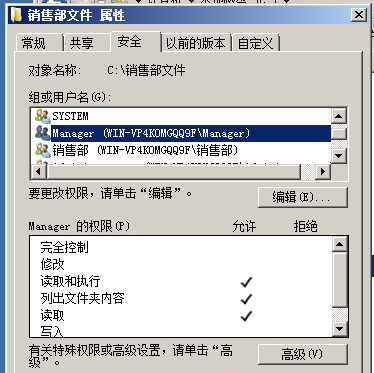 (5)销售部文件的所有者为销售部组,销售部组队销售部文件有完全控制权限