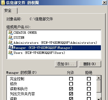 (3)信息部组的员工对信息部文件有完全控制的权限
