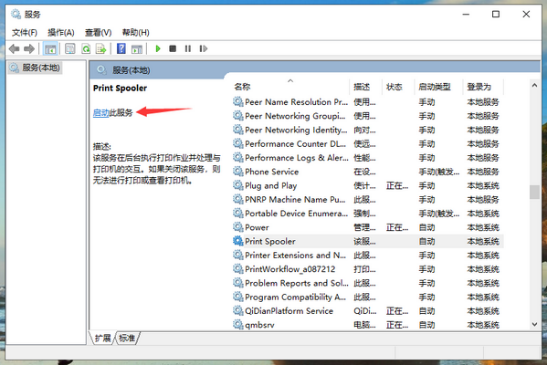4、打开打印机,清除打印机上的打印任务。再次右键“Print Spooler”服务,点击启动。