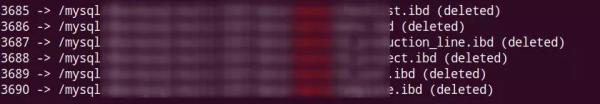 真是太幸运了,这个测试环境里面的表比较少,所有表的数据文件还都是打开状态。数据被找回的概率就很大了。接下来就是如何把这些显示为 deleted 的文件从文件系统中找回了。