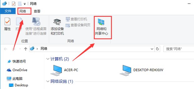 找到上方选项栏中的“网络”,然后点击“网络和共享中心”