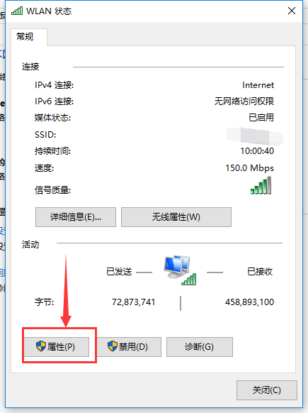 打开“属性”后找到“internet 协议版本 4”,将其选中