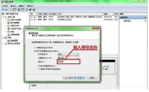 3、创建新分区。在未分配空间上点击右键选择新建简单卷/跟随向导操作,一次输入卷大小(分区容量)、驱动器号、分区格式等参数后点击完成。友情提示,建议勾选快速格式化可以加快格式化速度。(