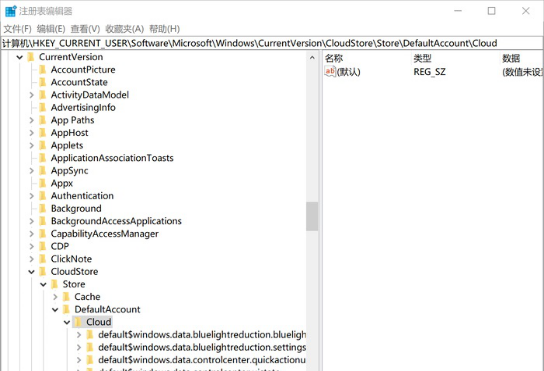 计算机\HKEY_CURRENT_USER\SOFTWARE\Microsoft\Windows\CurrentVersion\CloudStore\Store\DefaultAccount\Cloud