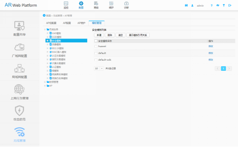 依次单击“配置 > 无线管理 > AP管理 > 模板管理”,进入“模板管理”页面。