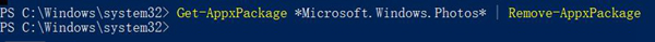 Get-AppxPackage *Microsoft.Windows.Photos* | Remove-AppxPackage