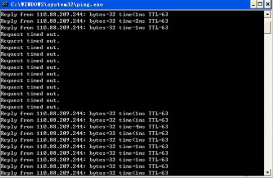 it服务4、当中途出现 Request timed out ,说明丢包了,网络不稳定。如下图