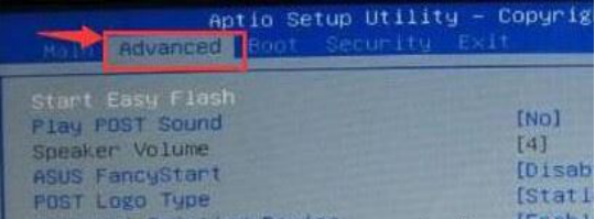 电脑维护2、按键盘方向键“→”切换到“Advanced”选项,如下图所示: