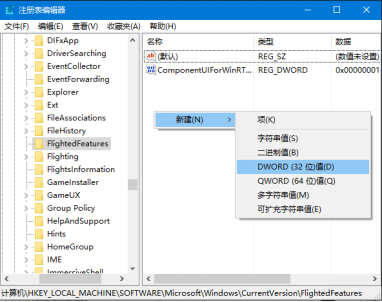 3、在右边新建DWORD(32位)值,重命名为ImmersiveContextMenu,数值数据直接使用默认的“0”,不必修改,如下图——
