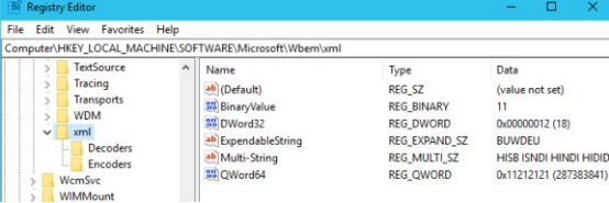 [HKEY_LOCAL_MACHINE\SOFTWARE\Microsoft\Wbem\xml\Encoders\newTestKey]