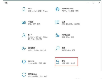 第一步、WIN10系统按下Win+I组合键打开Windows 设置,单击其中“隐私”项目;