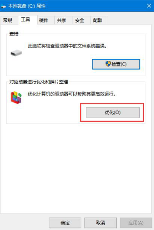 3、在打开的窗口中找到“对驱动器进行优化和碎片整理”一项,点击其下的“优化”按钮;