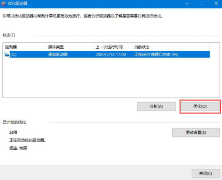 5、优化完成后,就会显示出最后一次优化的时间,以前当前硬盘的状态是否正常;
