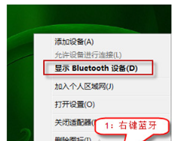 1、首先我们鼠标右键点击右下角的蓝牙图标,并选择“显示Bluetooth设备”,如下图所示。