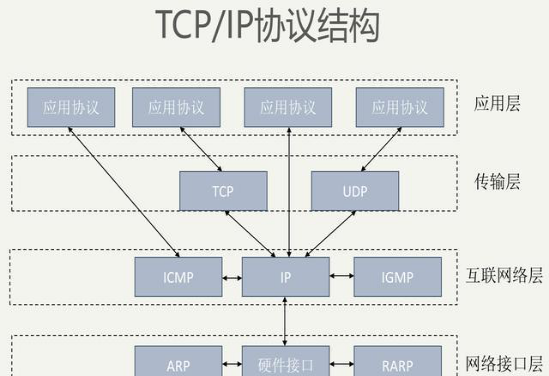 TCP/IP定义了电子设备如何连入因特网,以及数据如何在它们之间传输的标准。协议采用了4层的层级结构,每一层都呼叫它的下一层所提供的协议来完成自己的需求。通俗而言:TCP负责发现传输的问题,一有问题就发出信号,要求重新传输,直到所有数据安全正确地传输到目的地。而IP是给因特网的每一台联网设备规定一个地址。