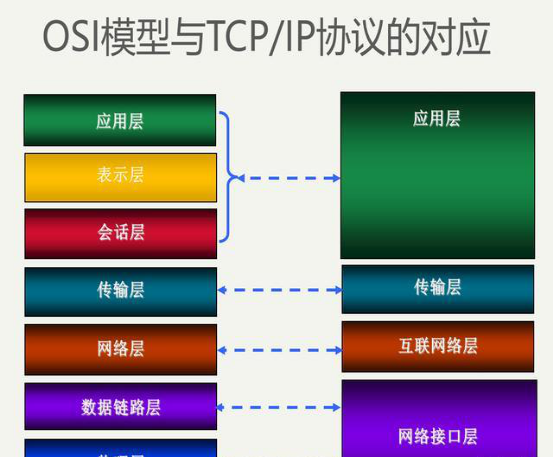 两个模型的下四层是一一对应的,而OSI模型的上三层对应到TCPIP协议的应用层,所以在谈论“应用层”概念的时候,要注意讨论的是哪个模型。